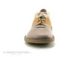 Cette bottine Ă lacet est en cuir souple, avec des empiècements Ă l’aspect naturellement grainĂ©.