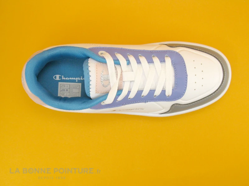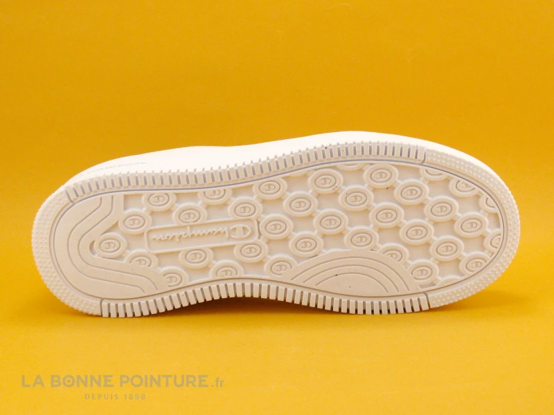 Le lacet blanc traverse 6 oeillets pour fermer la chaussure Femme Champion Rebound platfor.