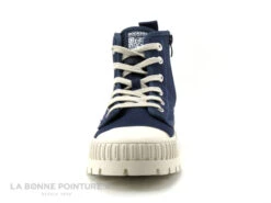 Le lacet plat contraste en blanc, il traverse une huitaine d’oeillets pour fermer efficacement la basket compensée Dockers 50VL202.