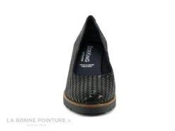Cette chaussure montante Femme bleu marine associe un cuir velours et un cuir quadrillé aspect verni .
