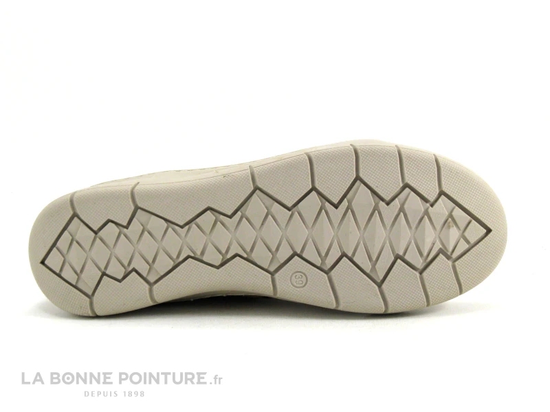 Un Ă©lastique marron foncĂ© cĂ´tĂ© extĂ©rieur donne de l’aisance dans cette chaussure Femme adaptĂ©e pieds larges.