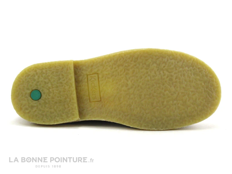 La semelle de marche très souple du derbi rose Kickers Karma est en caoutchouc aspect crêpe, avec un petit talon décoché d’environ 2 cm.