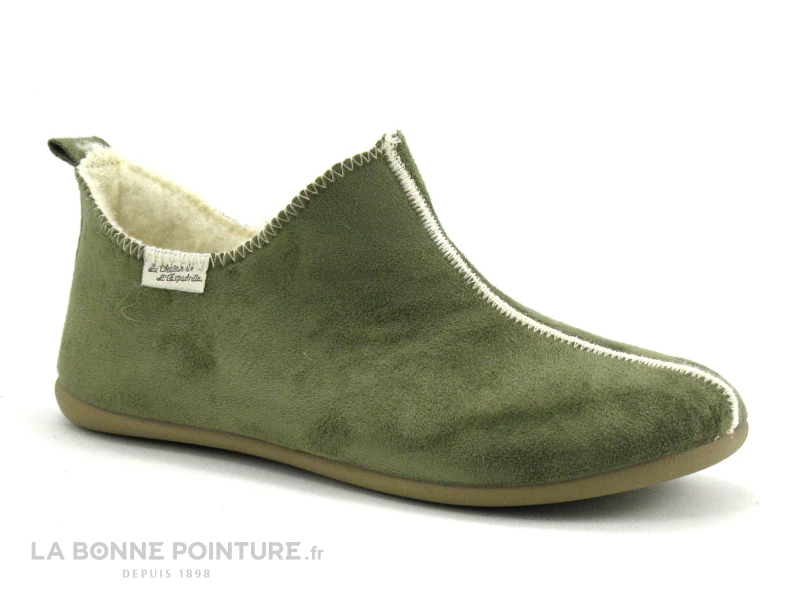L’intérieur du chausson kaki Maison de l’Espadrille 6030 est en pure laine vierge, pour un environnement douillet et bien chaud.