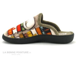 Ouf GRICHKA Taupe – Chat Qui Dort Sur Des Livres – Pantoufle Mule F