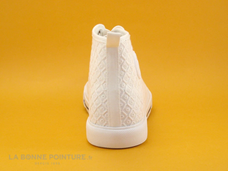 Cette tennis montante Tropézienne 42551 est fabriquée en coton biologique blanc avec broderie.